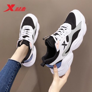 革面保暖厚底时尚 运动鞋 平底鞋 板鞋 子 女款 秋季 女鞋 特步男鞋 休闲鞋