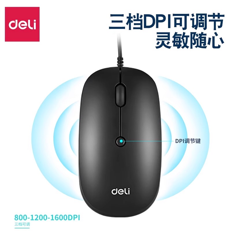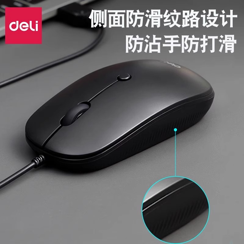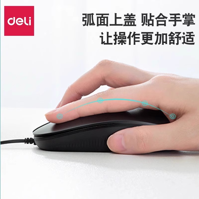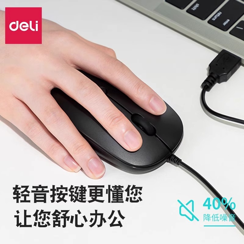 得力有线轻音鼠标外接usb台式 机电脑笔记本办公家用滑鼠通用鼠标