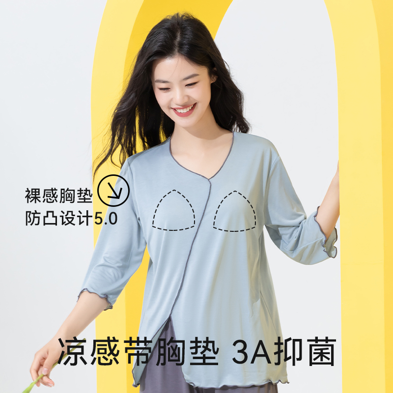 高级感家居服 上衣2025新款 带胸垫睡衣女夏薄款 莫代尔凉感抗菌短袖