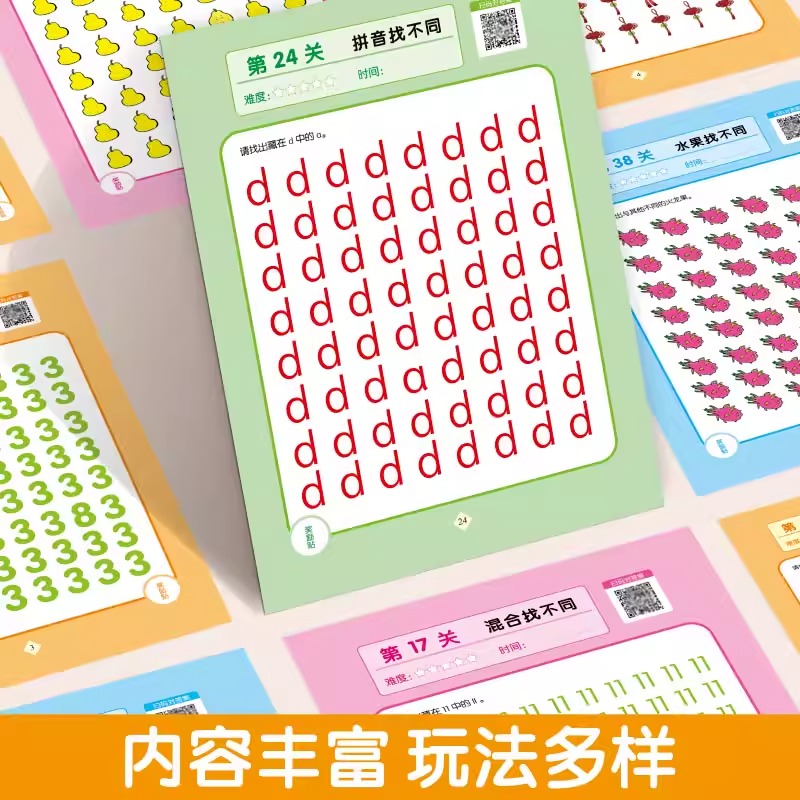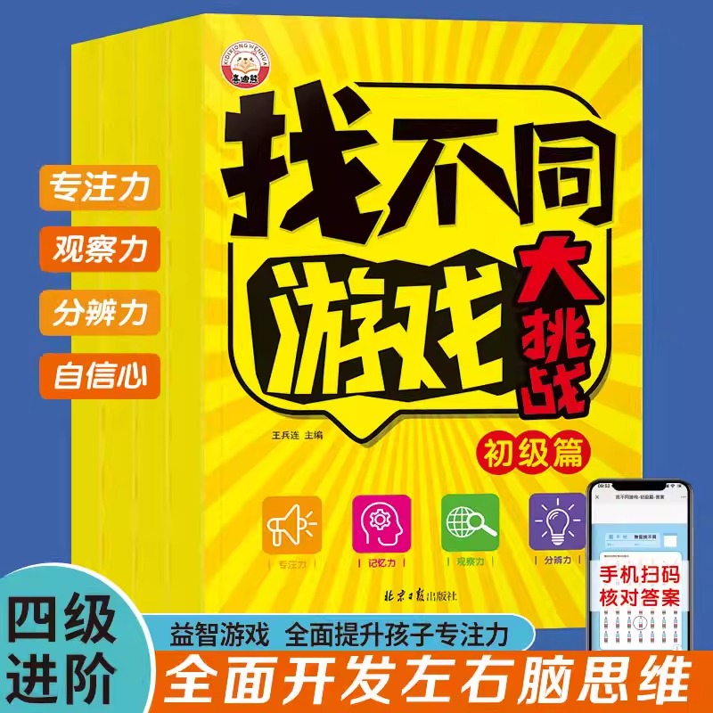 找不同游戏专注力训练全4册亲子互动游戏逻辑思维练习册3 8岁儿童观察力启蒙早教书幼儿园小班中班大班宝宝左右脑智力开发游戏书
