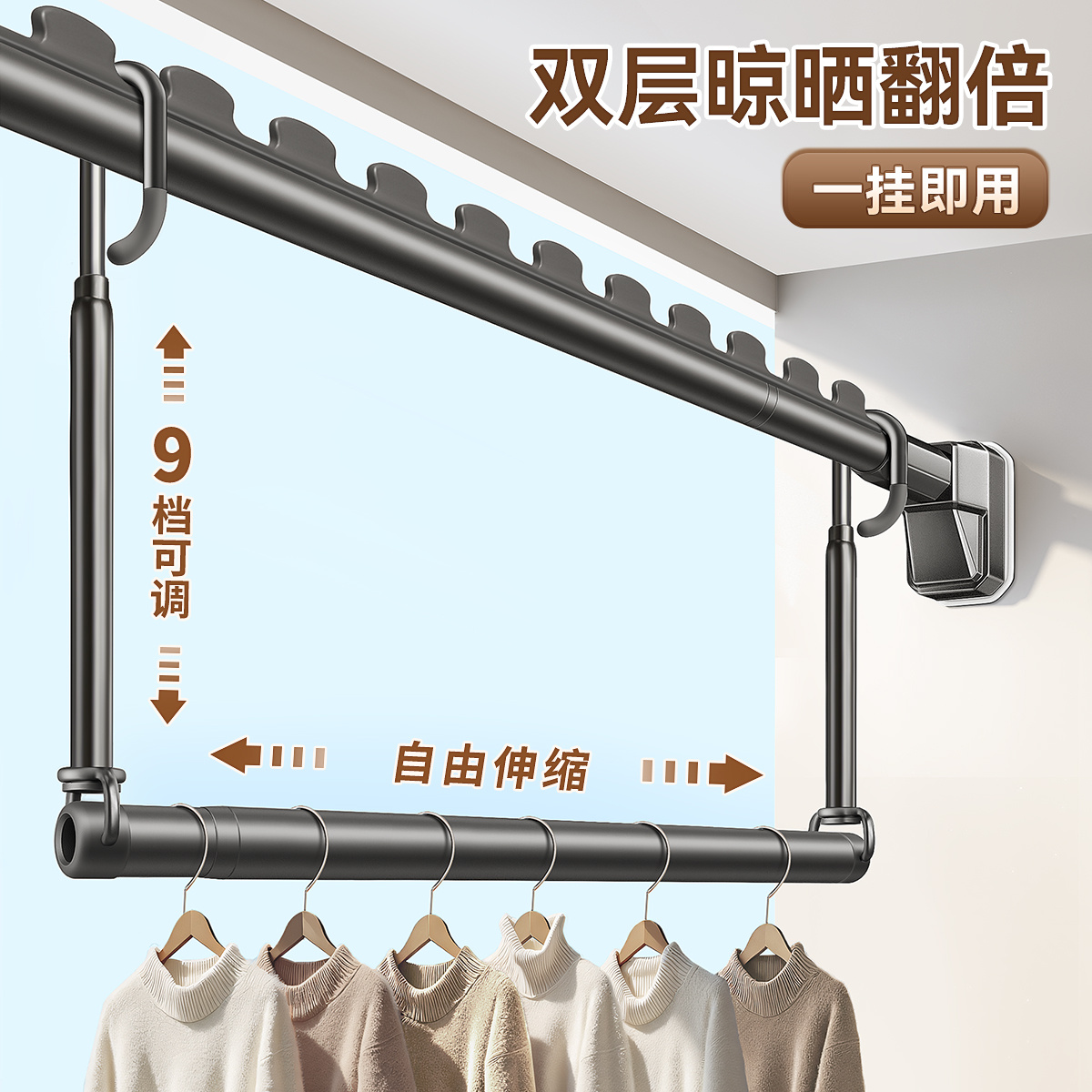 晾衣架阳台家用伸缩晾衣挂杆免打孔一根升降悬挂式 吊杆晒被子神器