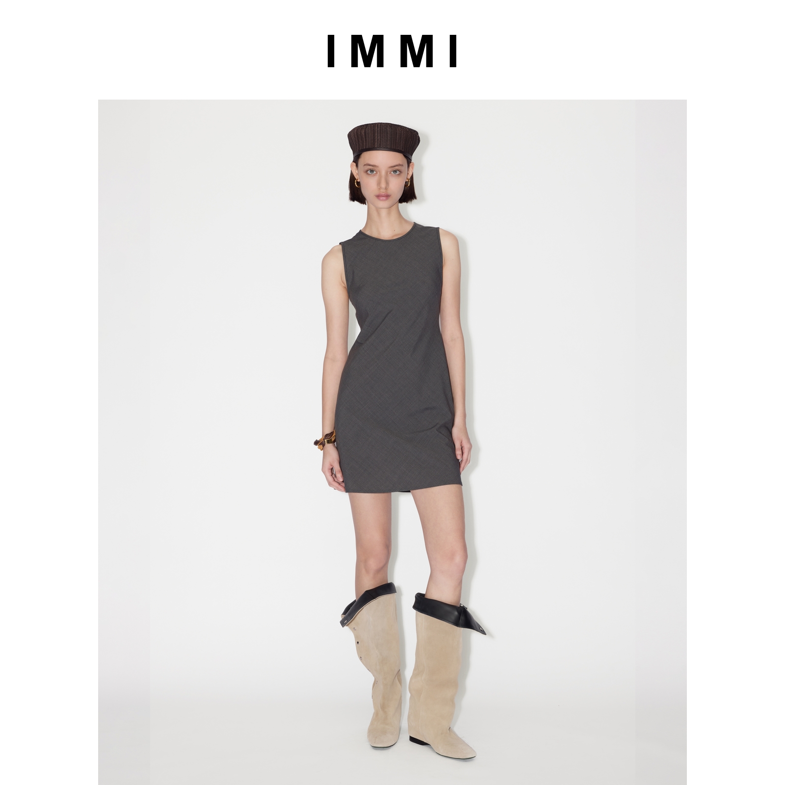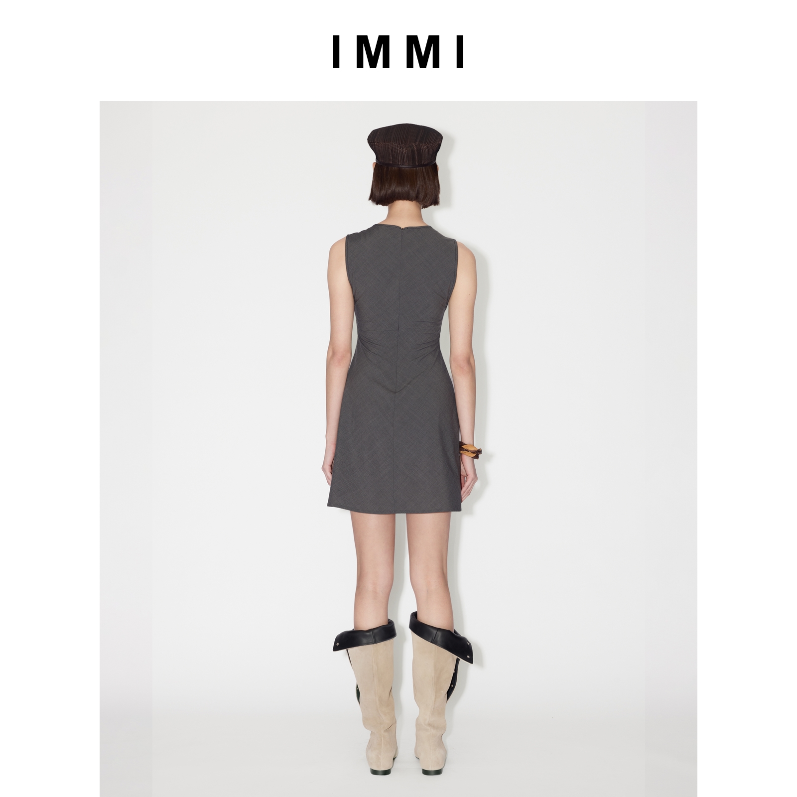 精纺羊毛斜裁无袖 25早秋新品 背心连衣裙MWEFWWDS0262X IMMI
