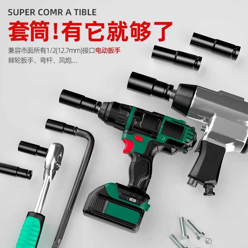 电动扳手套筒全套加长汽修大中小飞内六角风炮套筒头组合套装 工具