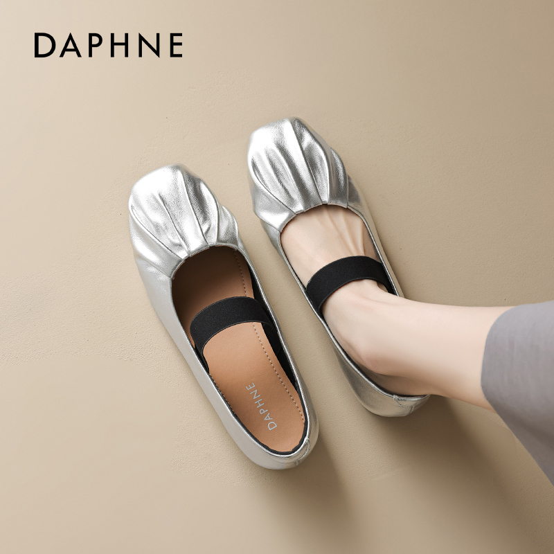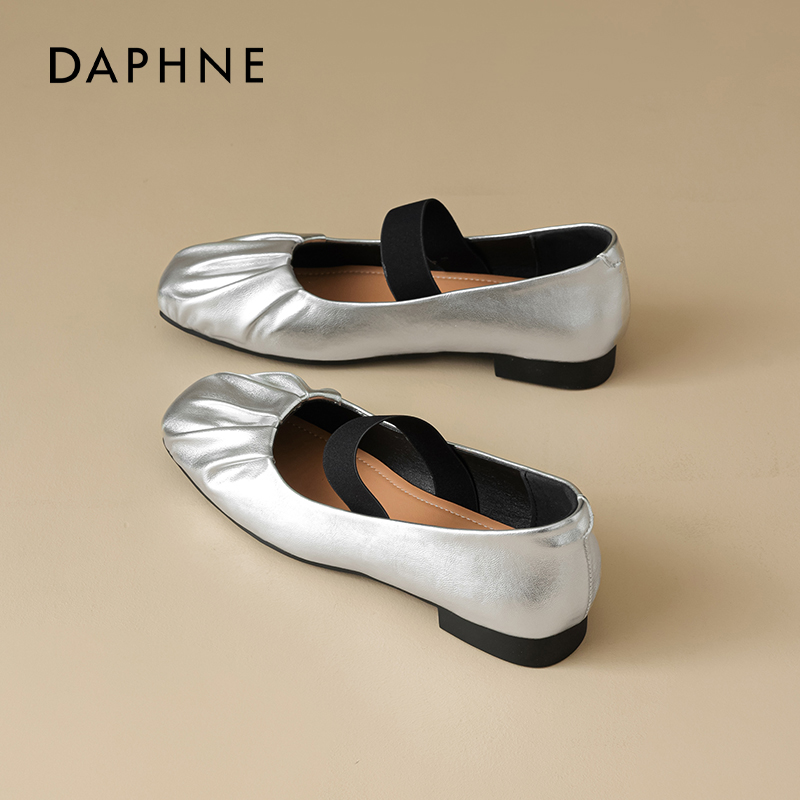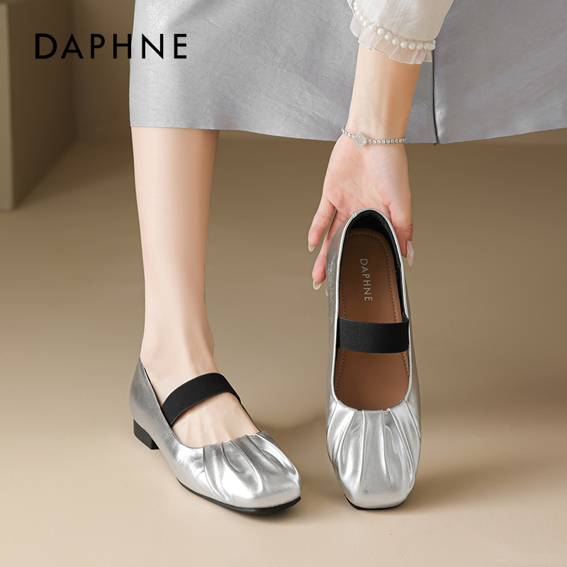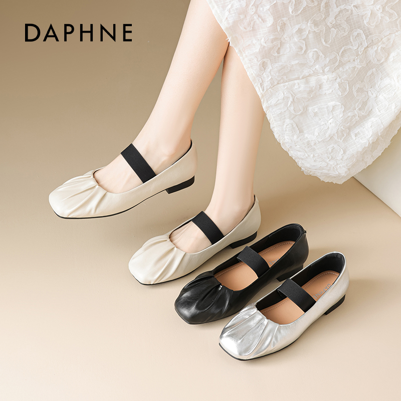 子E1V1DCQ5 蛋卷平底浅口单鞋 百丽小金豆羊皮芭蕾玛丽珍鞋 女新款