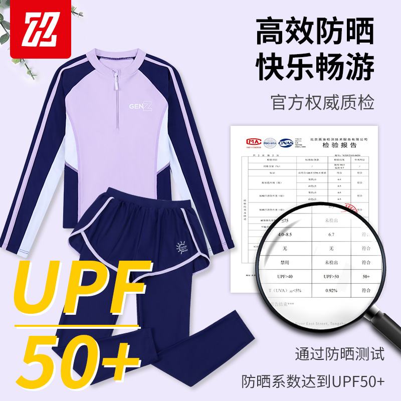 KK树儿童泳衣男童宝宝分体三件套女孩游泳衣海边沙滩防晒长袖 长裤