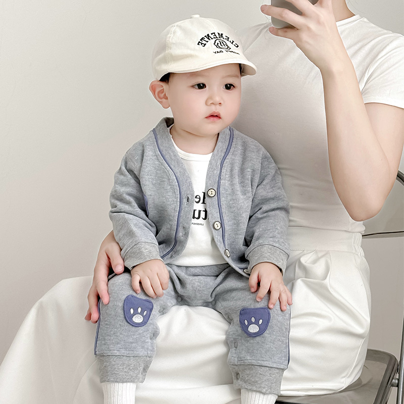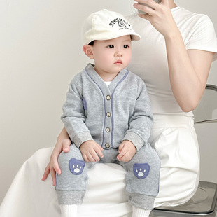 长袖 可外穿家居服套装 开衫 新款 男 纯色全棉秋冬季 雅鹿纯棉睡衣男士