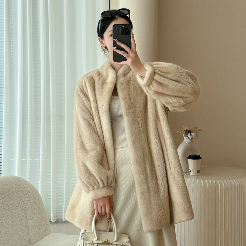 新款 2025冬季 海宁整貂毛皮草外套显瘦 立领长袖 水貂皮大衣女中长款