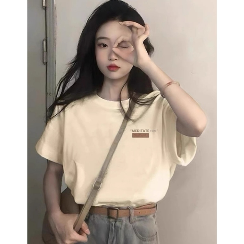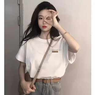 宽松纯棉设计感小众体恤上衣潮 新款 简约杏色t恤女短袖 2025年夏季