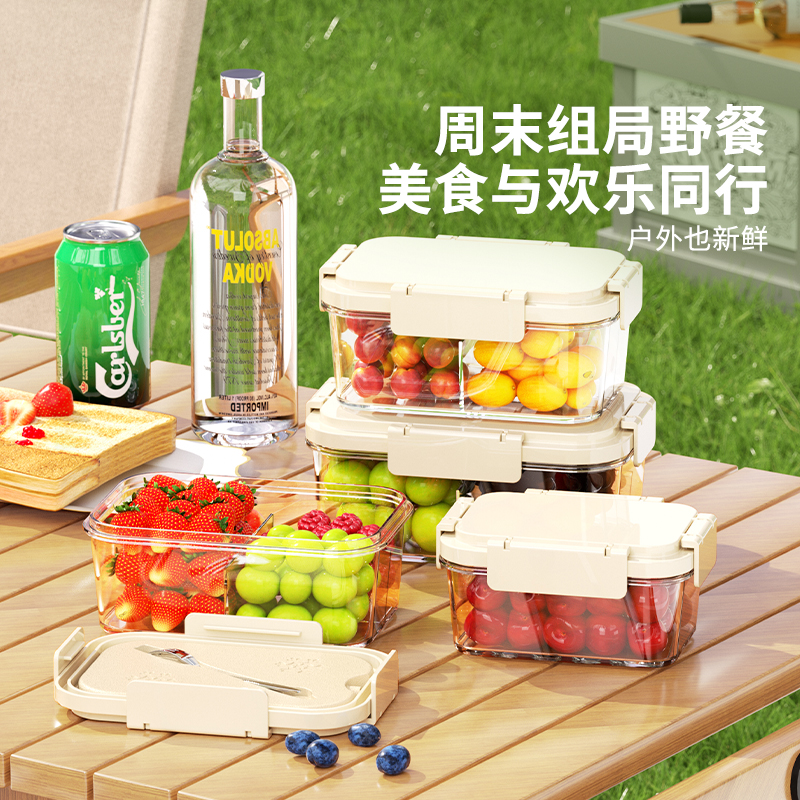 摩登主妇水果便当盒保鲜盒便携外出带叉子小学生儿童装 水果外带盒