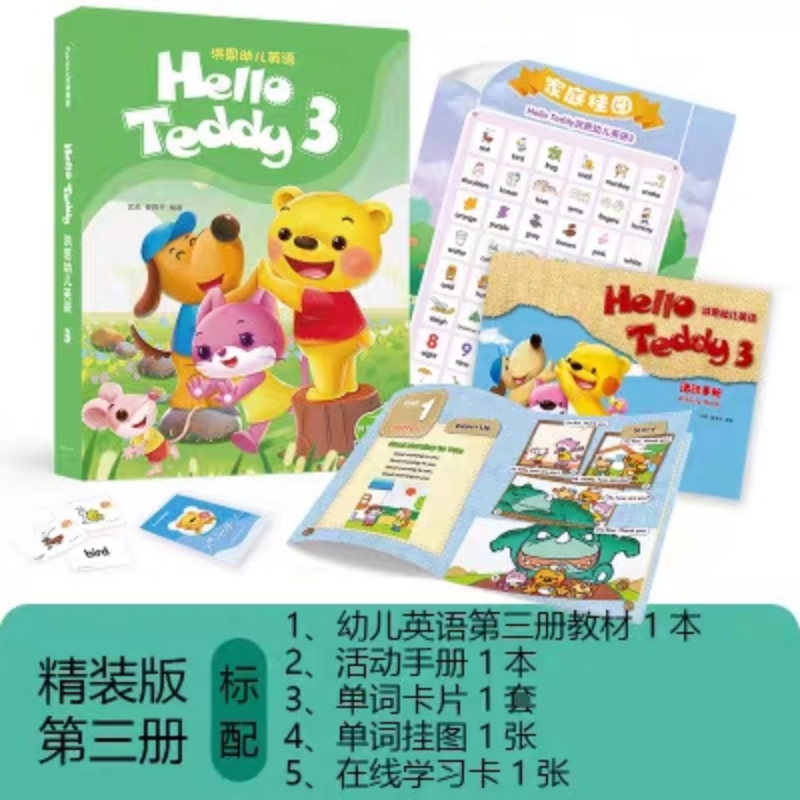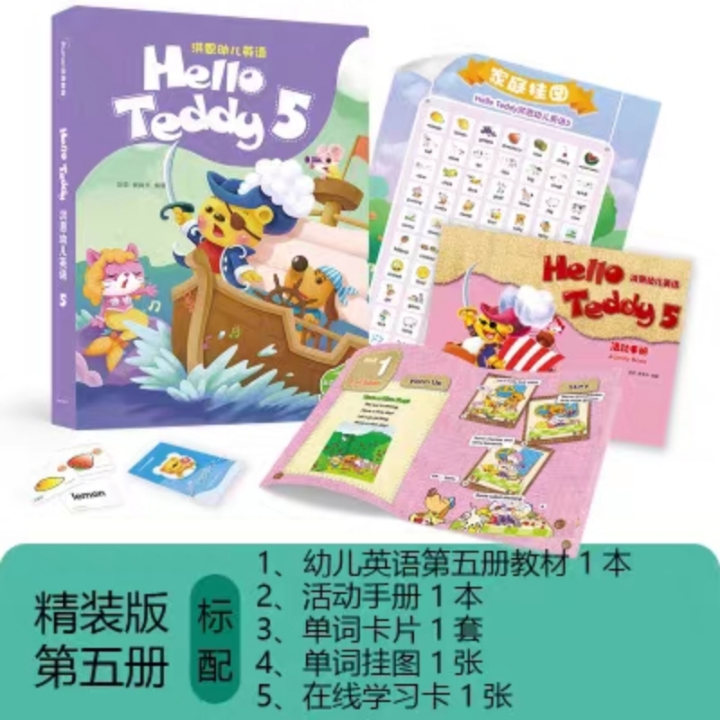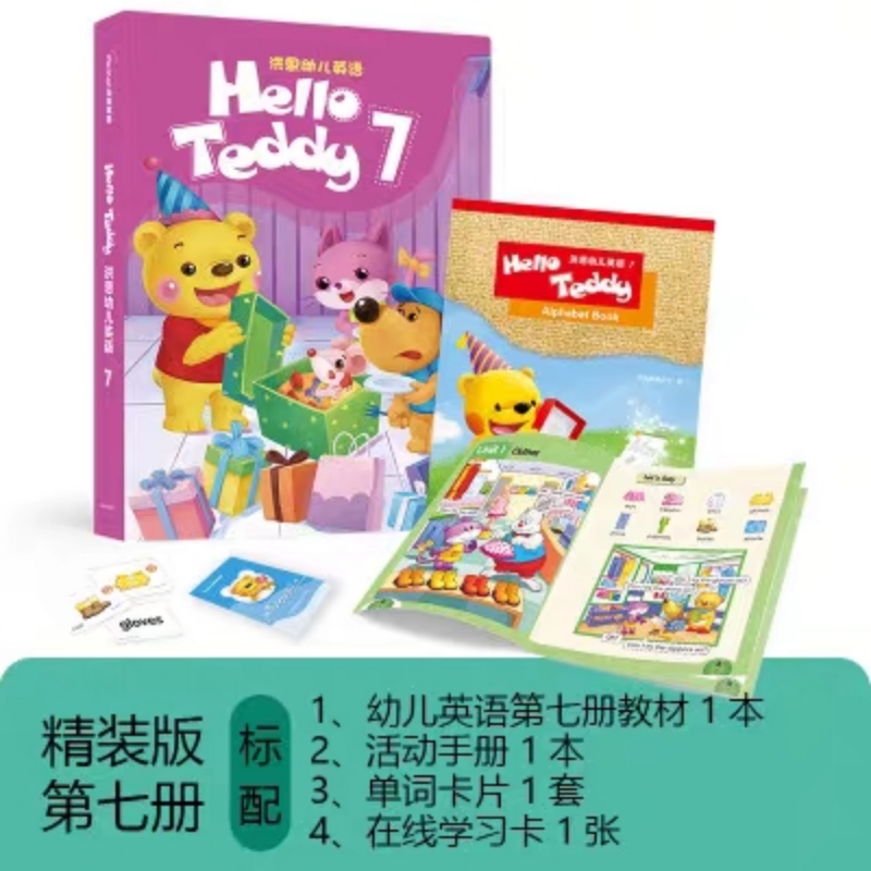 官方正版 洪恩幼儿英语教材1 Teddy口语启蒙绘本教具盒装 7岁宝宝早教书籍练习册拼音识字卡片挂图国际单词abc 8册幼儿园Hello