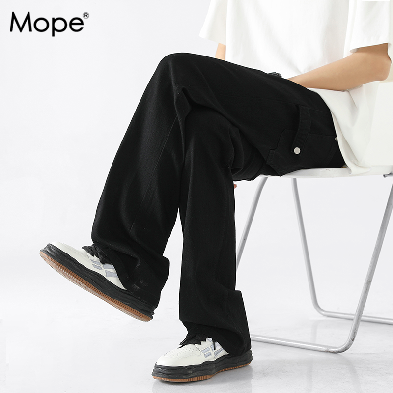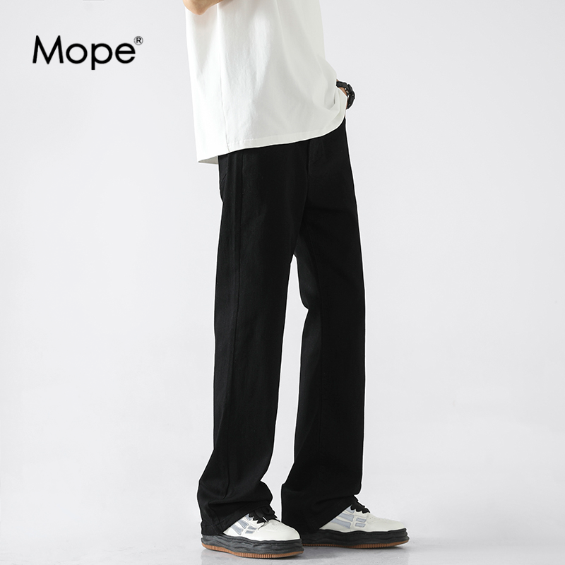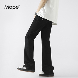 潮牌宽松百搭微喇裤 男新款 休闲重磅纯黑色春秋直筒牛仔裤 MOPE美式
