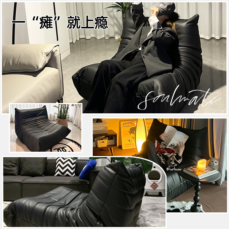 黑色毛毛虫懒人沙发椅阳台躺卧网红卧室单人小沙发榻榻米可躺可睡