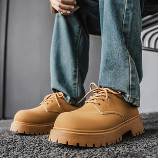 复古皮鞋 马登黑色方头德比鞋 男厚底增高休闲马丁低帮通勤大头工装