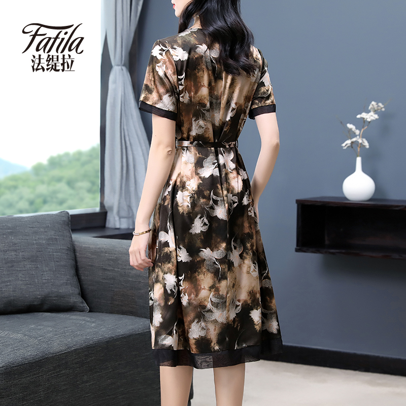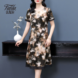 裙子05465469 抗皱保型圆领收腰短袖 佐丹奴假两件连衣裙女夏季 新款