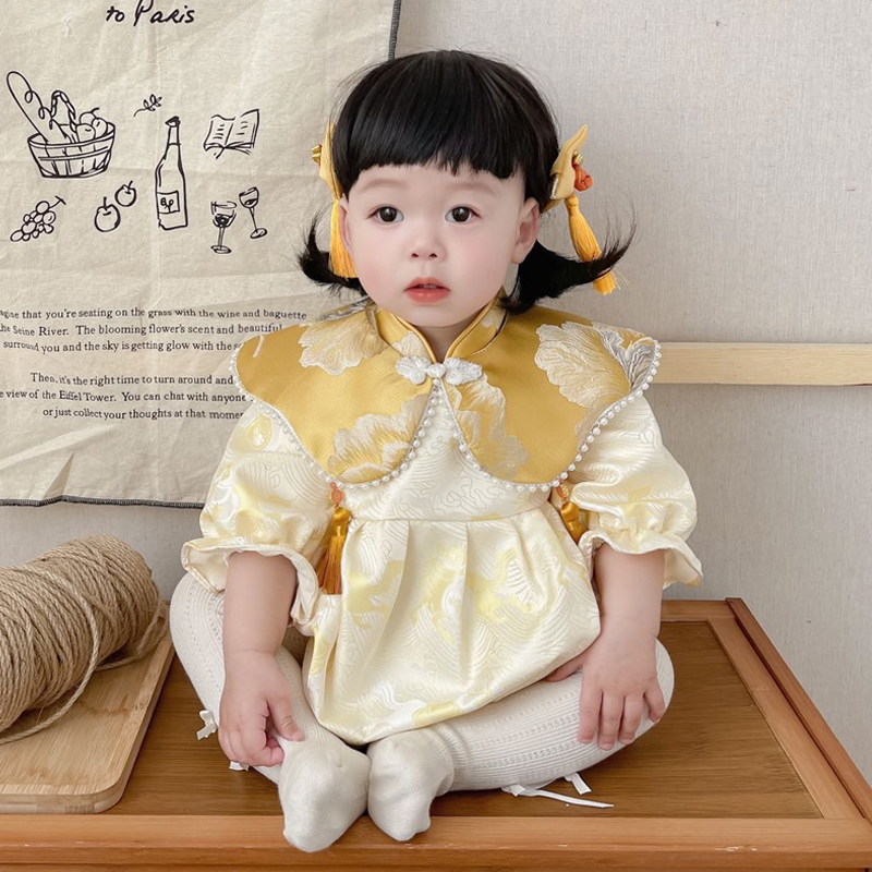 公主裙夏季 女宝宝一周岁抓周礼服2025新款 婴儿百天宴包屁衣新中式