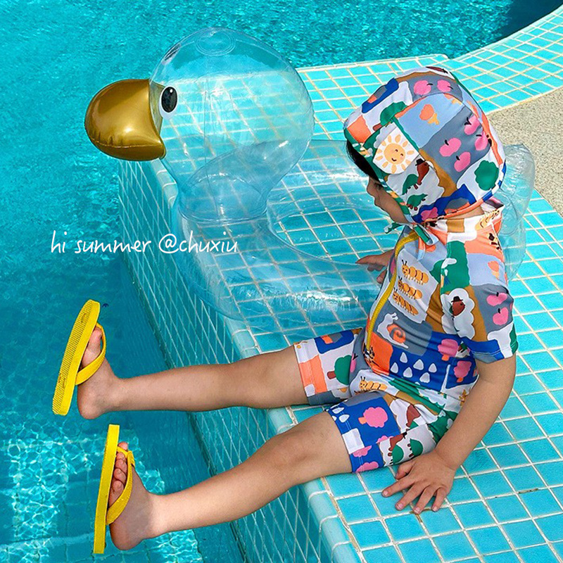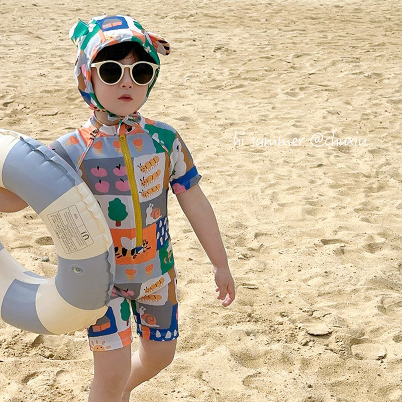 儿童泳衣男童连体短袖 速干防晒宝宝游泳衣中小童男孩温泉度假泳装