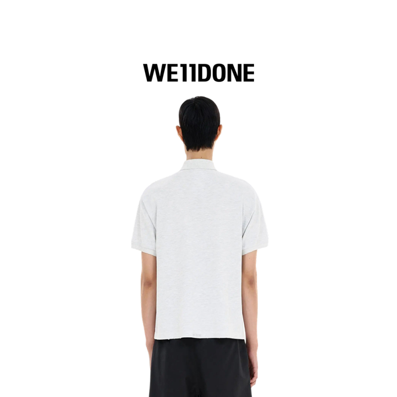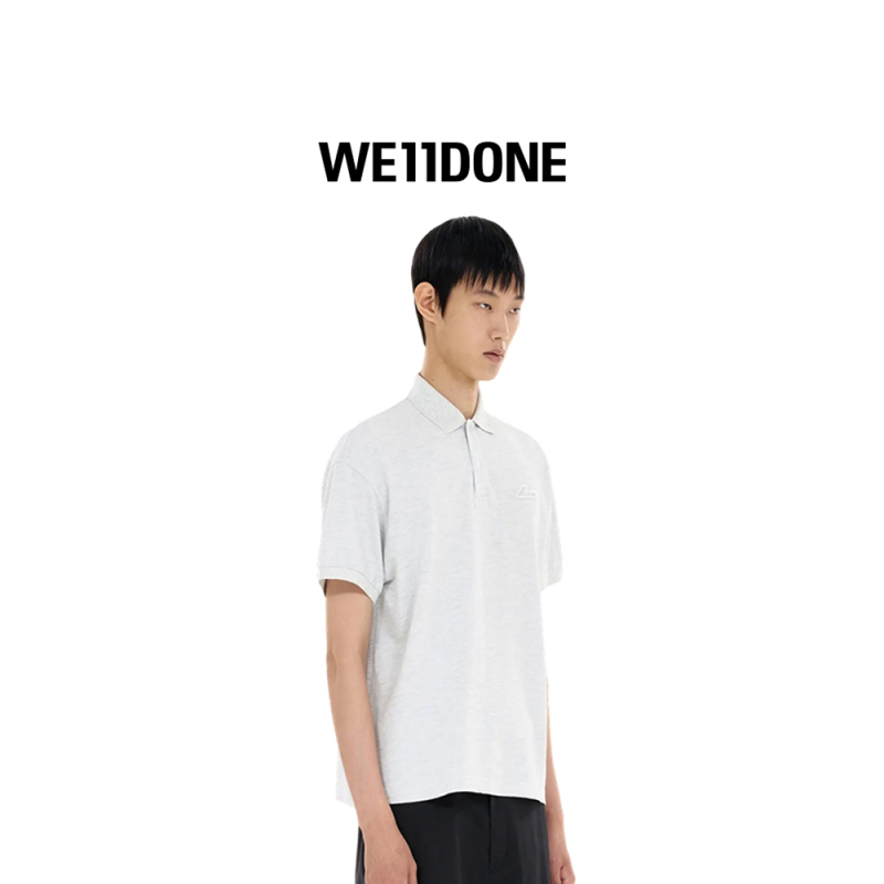 WE11DONE男女同款 灰色LOGO水洗领T恤简约通勤翻领上衣休闲潮流