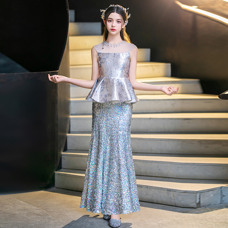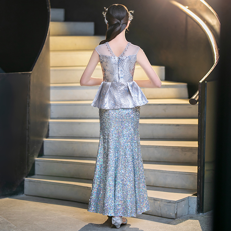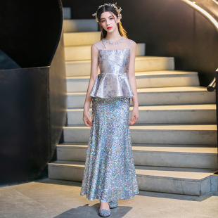 女童礼服小主持人高端轻奢小众生日宴摄影钢琴演奏儿童鱼尾公主裙