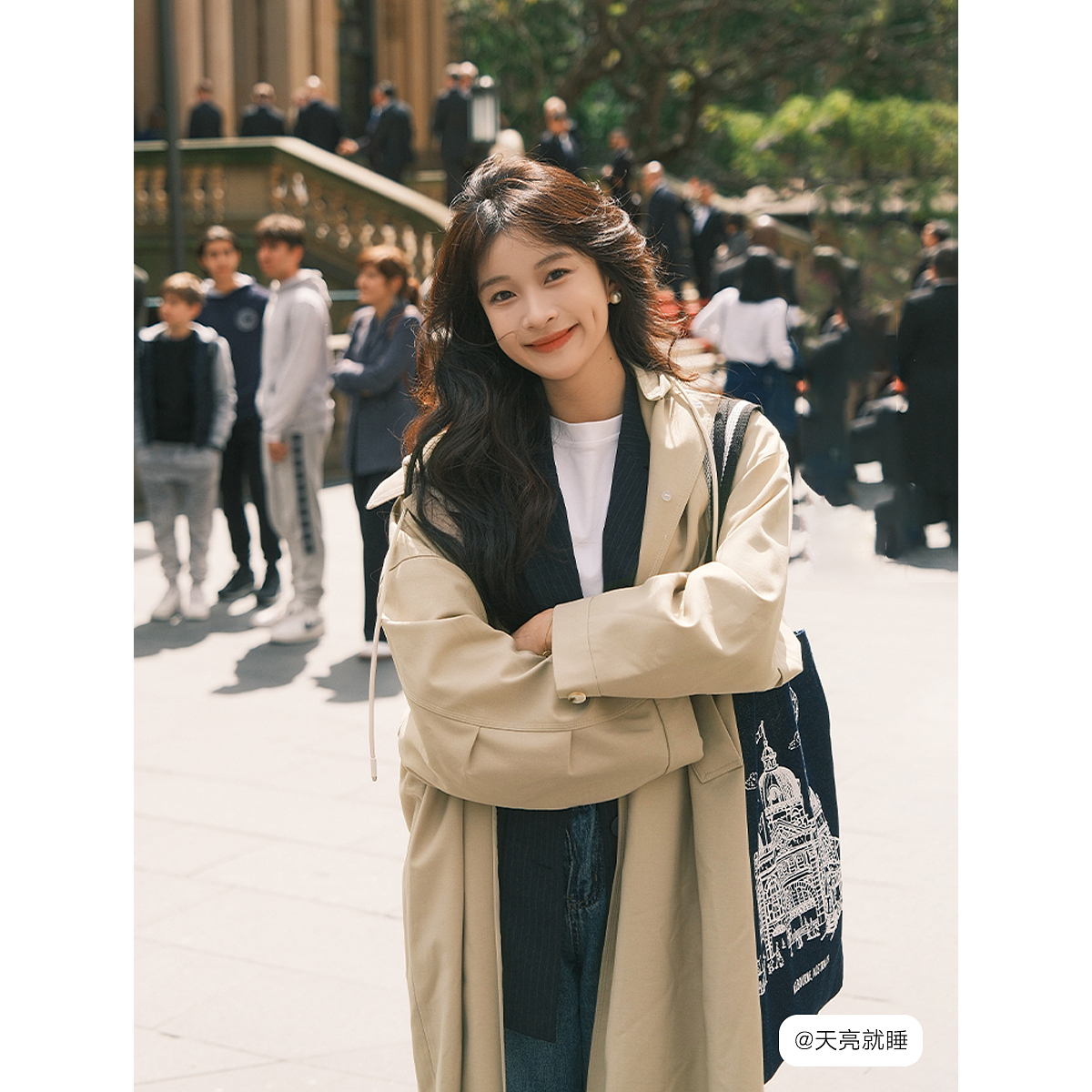 奈格薇儿小个子英伦风衣外套女春秋2025新款 大衣 气质双排扣中长款