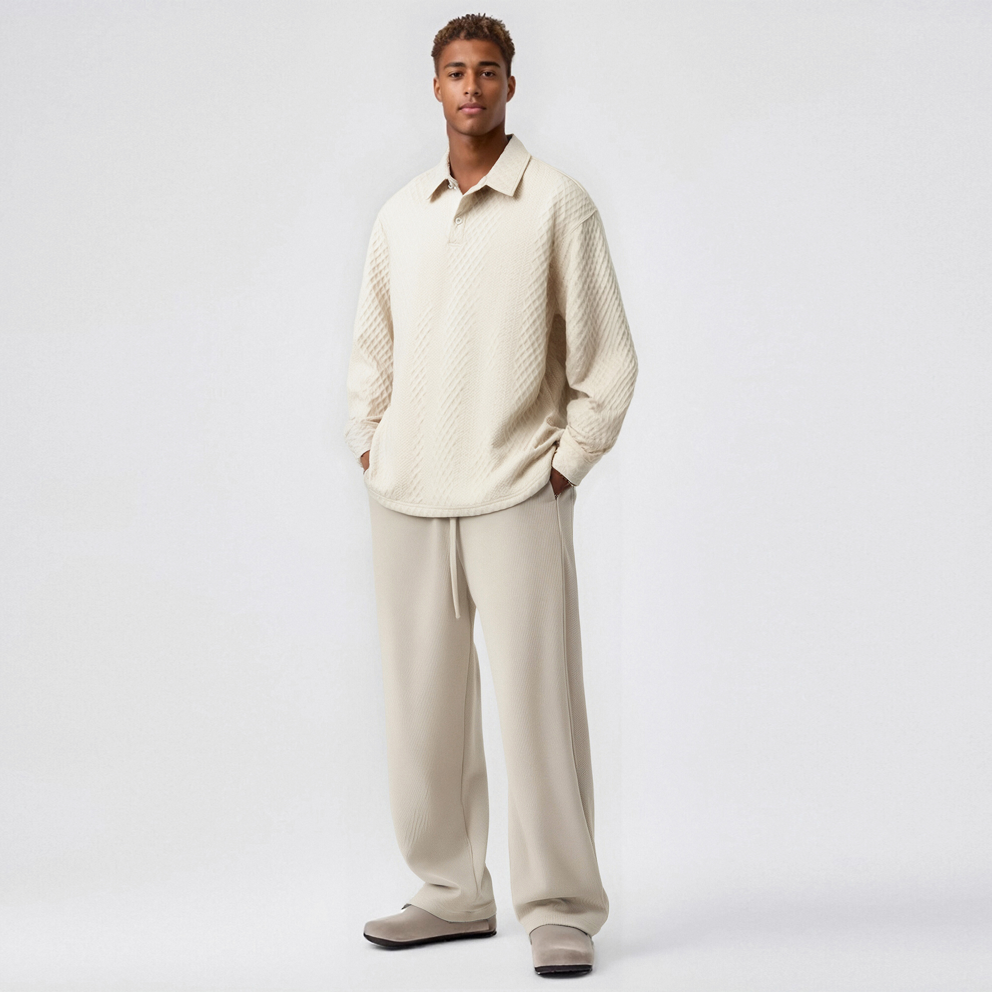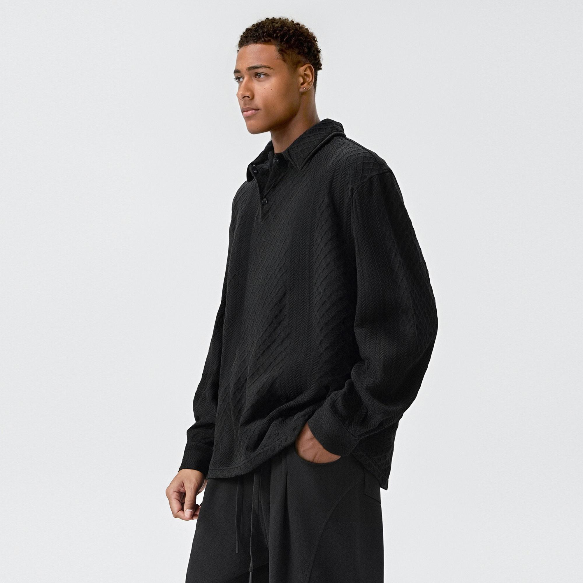 秋冬热卖 上衣 半开襟卫衣翻领肌理提花polo领卫衣长袖 GXG男装