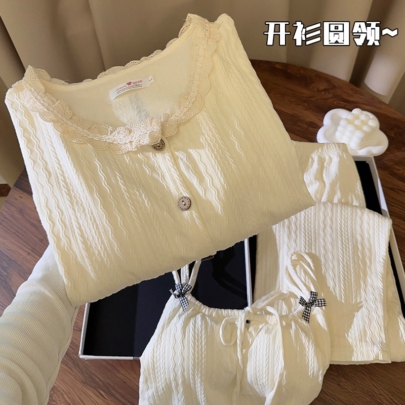秋冬天家居服套装 性感吊带睡衣女款 纯棉三件套装 2025新款 薄 春秋季