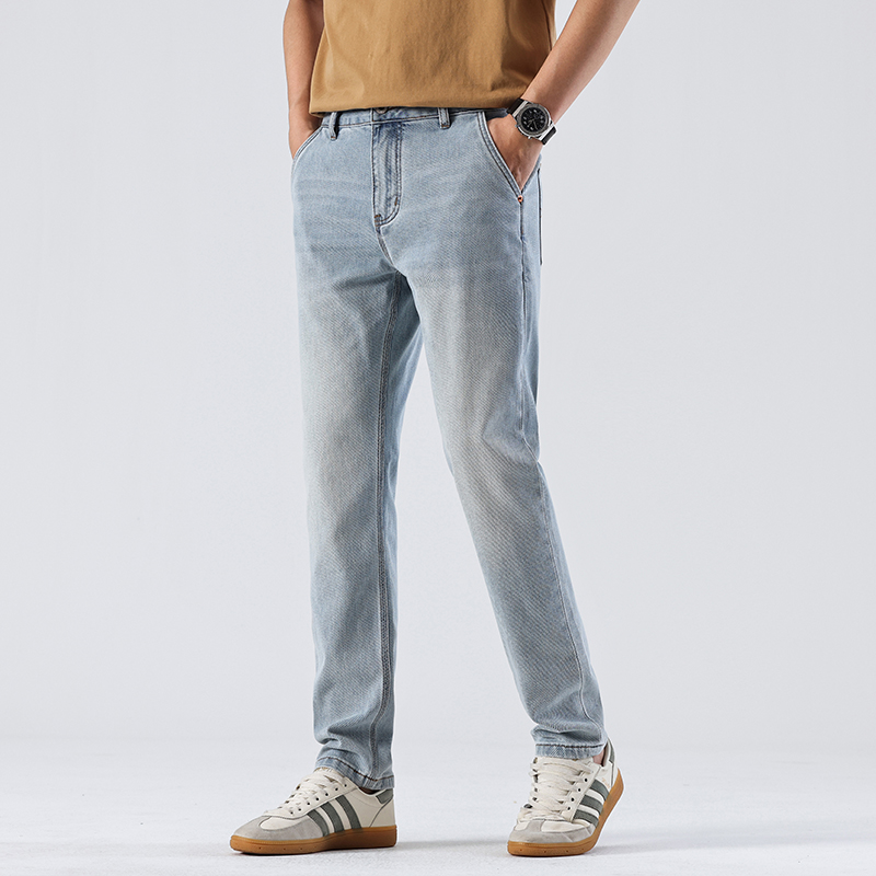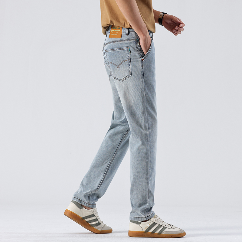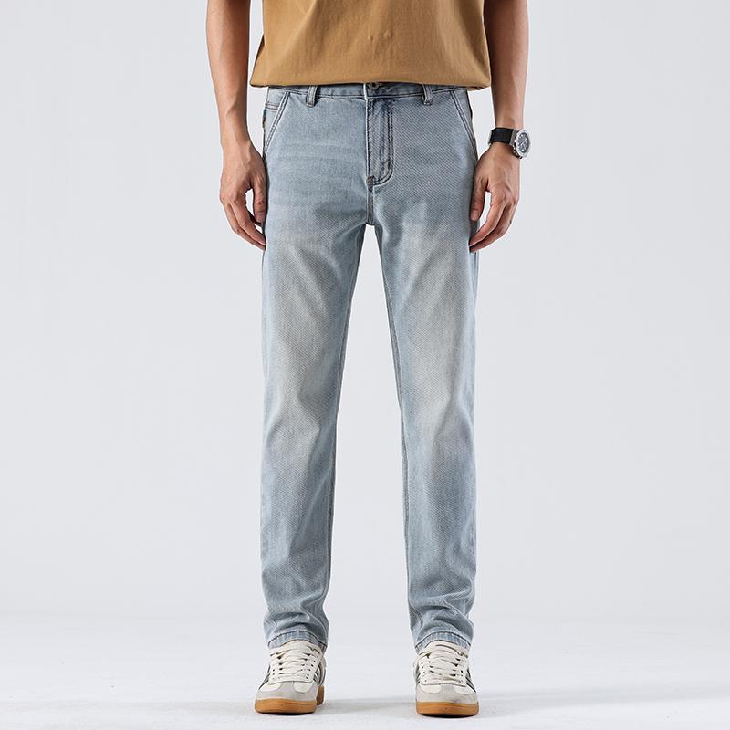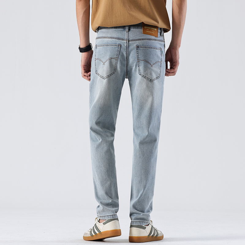 百搭小脚裤 快鱼蓝色高弹力男士 轻薄透气锥形裤 2025年秋新款 牛仔裤