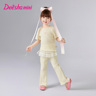 套装 叠穿内搭T恤木耳边牛仔阔腿裤 新款 蓝色镂空针织背心裙女秋季