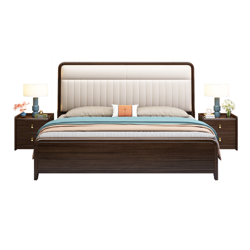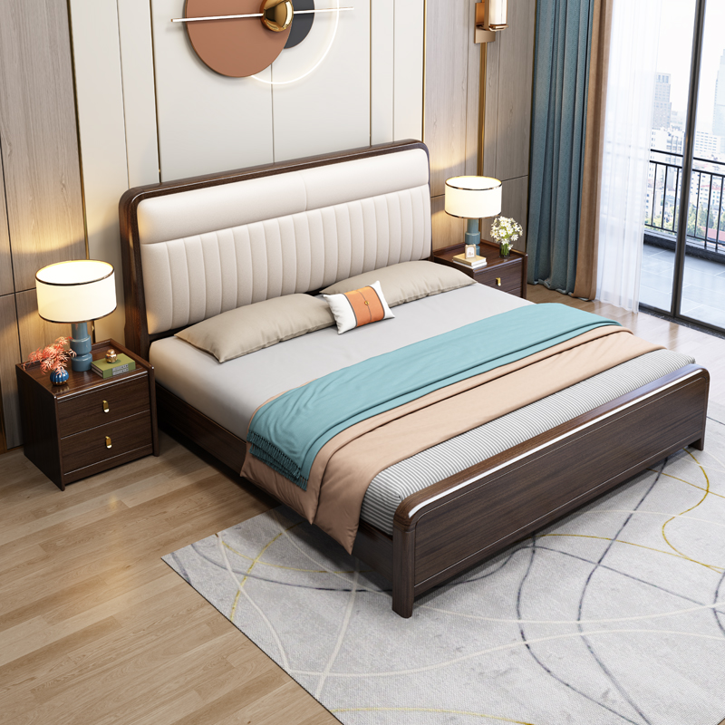 床实木床现代简约1.5m主卧家用橡木床架胡桃色1.8m全实木床双人床