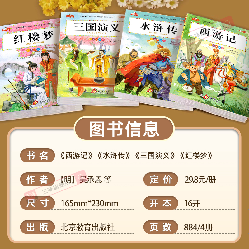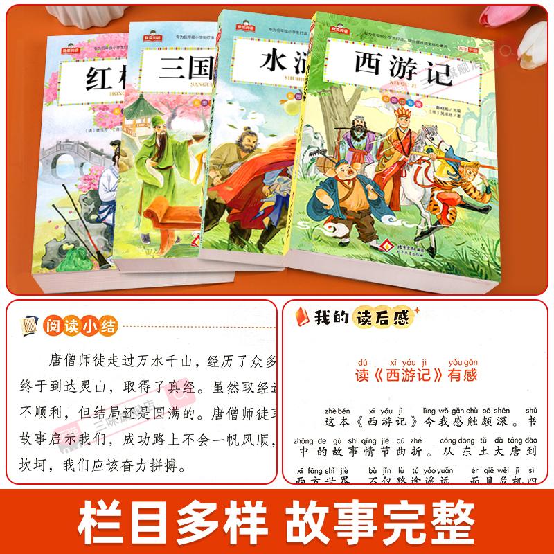 思维导图青少年阅读课外书籍一年级二年级必读漫画故事儿童绘本物 西游记三国演义水浒传红楼梦原著正版 四大名著小学生版 全套注音版