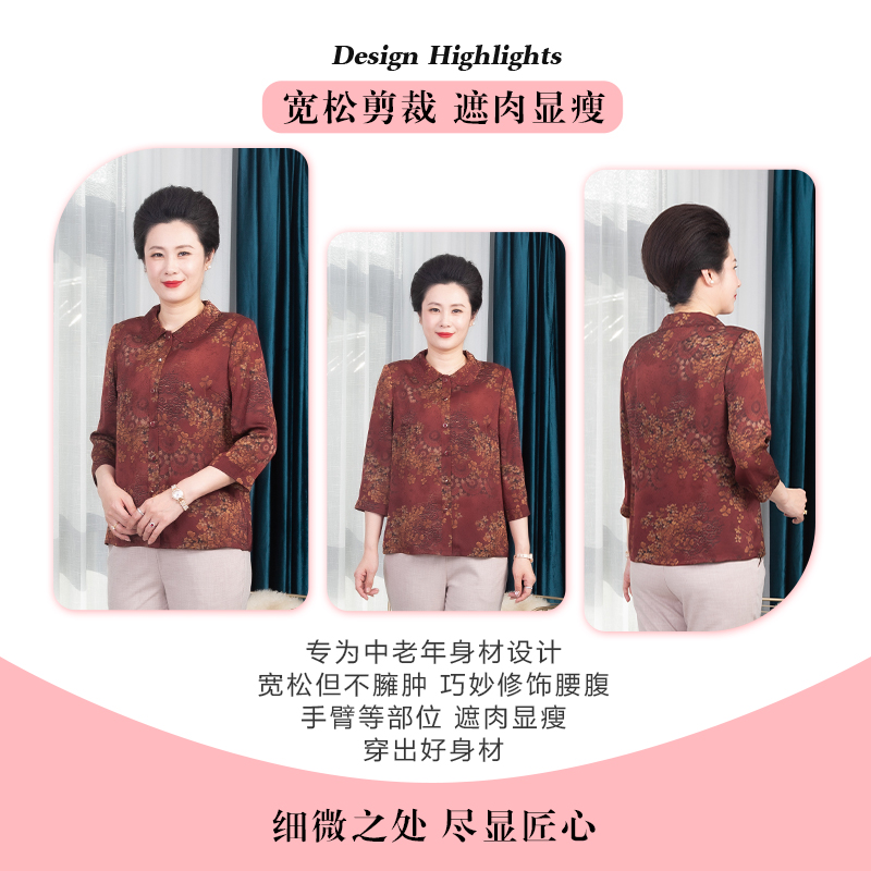 2025夏装 新款 国风雪纺衫 依佈妈妈装 衫 衬衫 中老年人清凉中袖 新中式