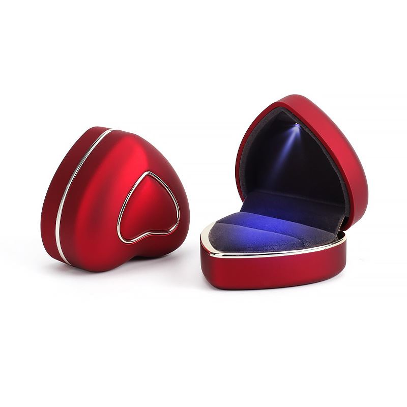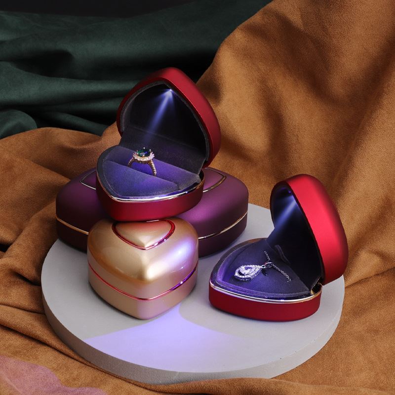 双金边LED灯心形首饰盒 求婚戒指盒钻戒盒项链吊坠饰品盒珠宝礼盒