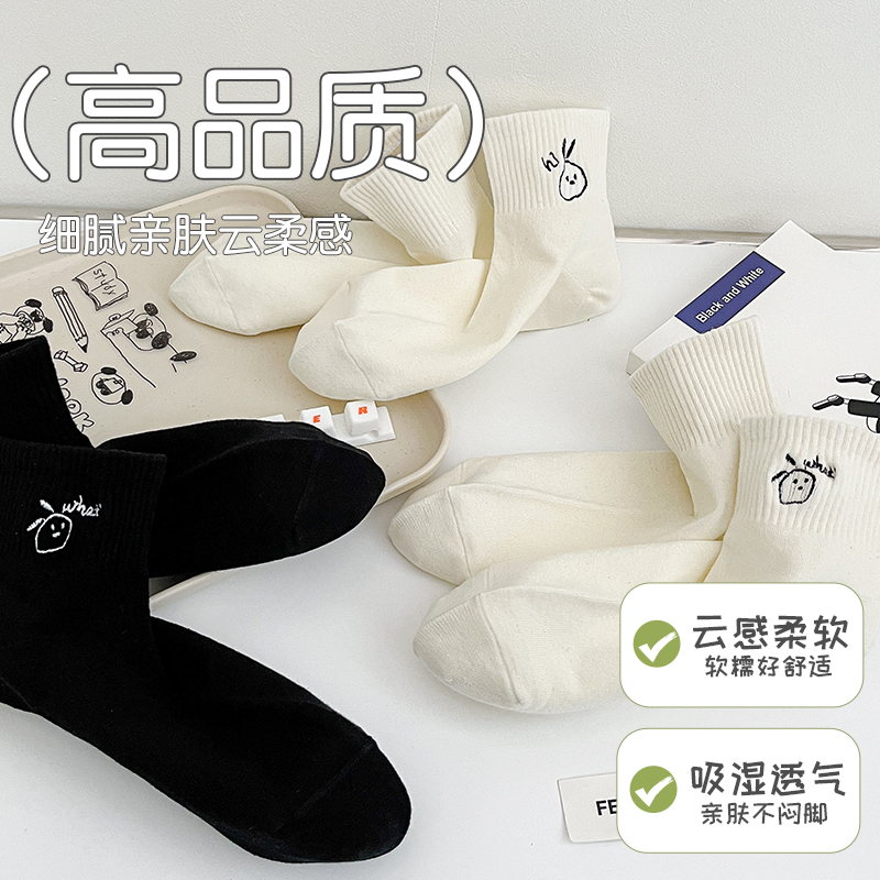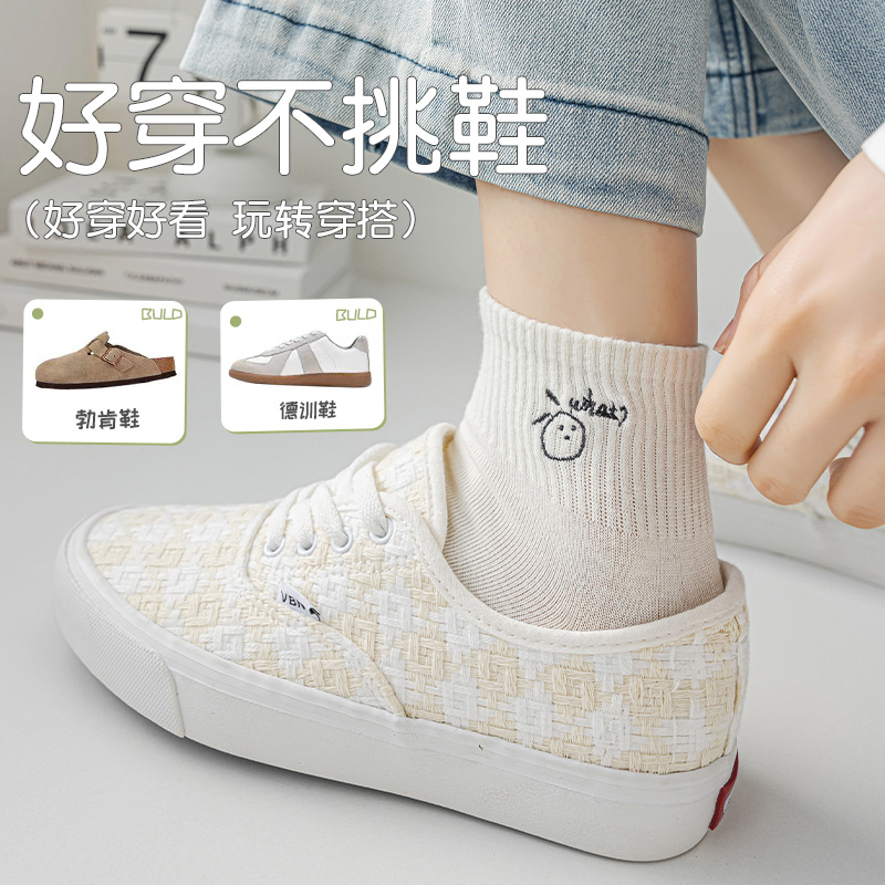 纯棉袜子女秋冬款 中筒袜7A抗菌防臭运动全棉短袜白色女士无骨棉袜