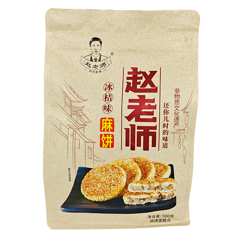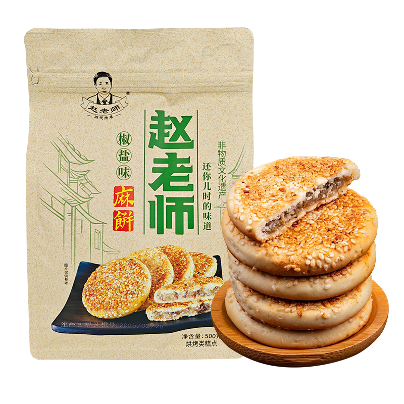 四川特产赵老师麻饼500g芝麻饼老式 糕点椒盐饼冰桔味休闲传统零食