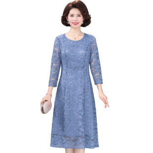 妈妈蕾丝连衣裙端庄大气 新款 中年女士正式 场合蓝色绣花裙2025春装
