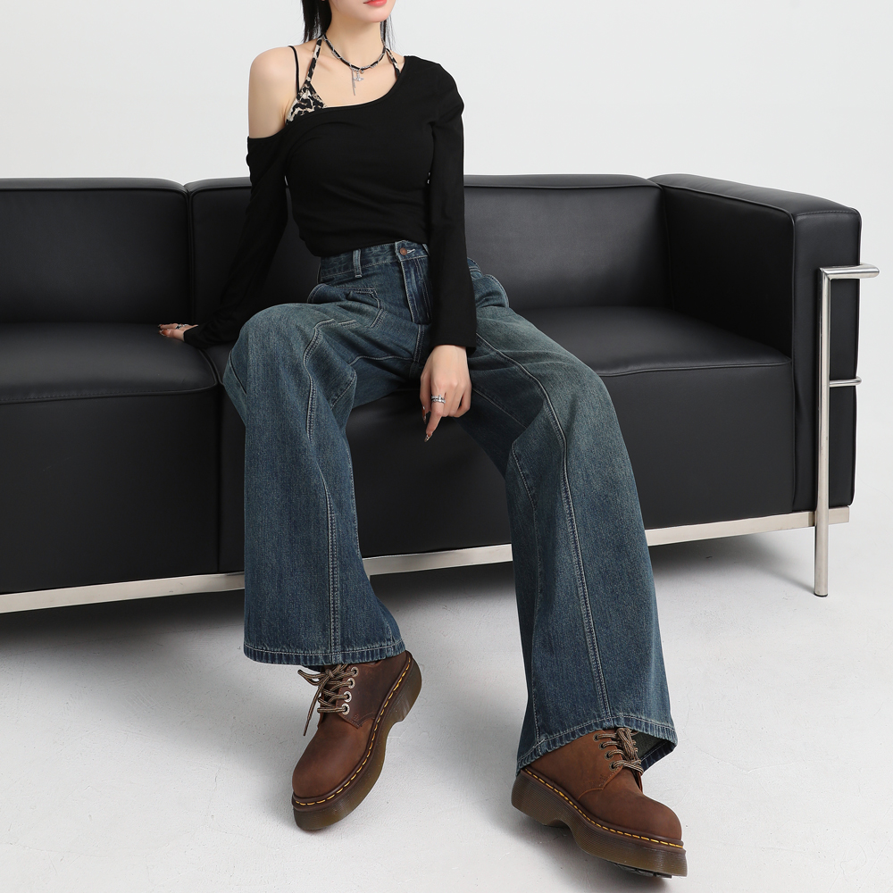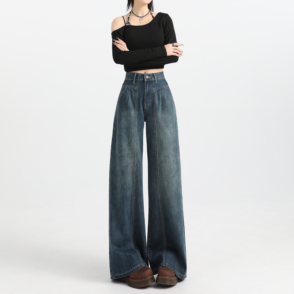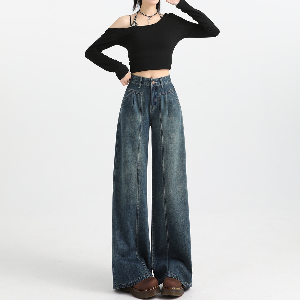 垂坠感高腰复古显瘦梨型身材直筒裤 今年流行爆款 女2025新款 牛仔裤