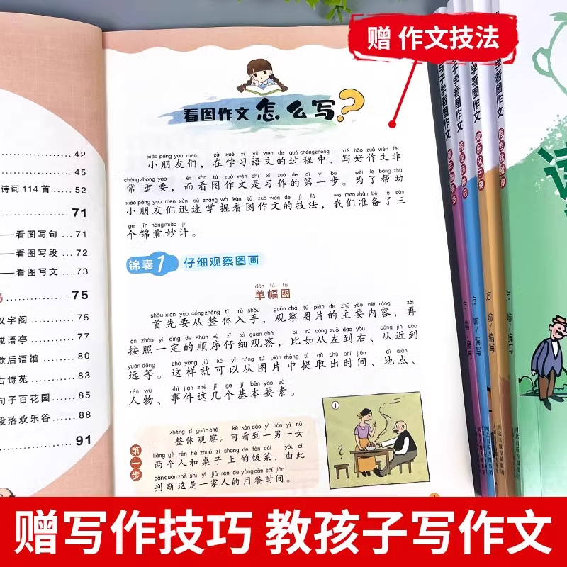 读父与子学看图作文一二年级语文写作技巧方法素材积累大全父与子漫画书看图写话讲故事彩图注音版 同步课本教材小学生课外阅读书籍