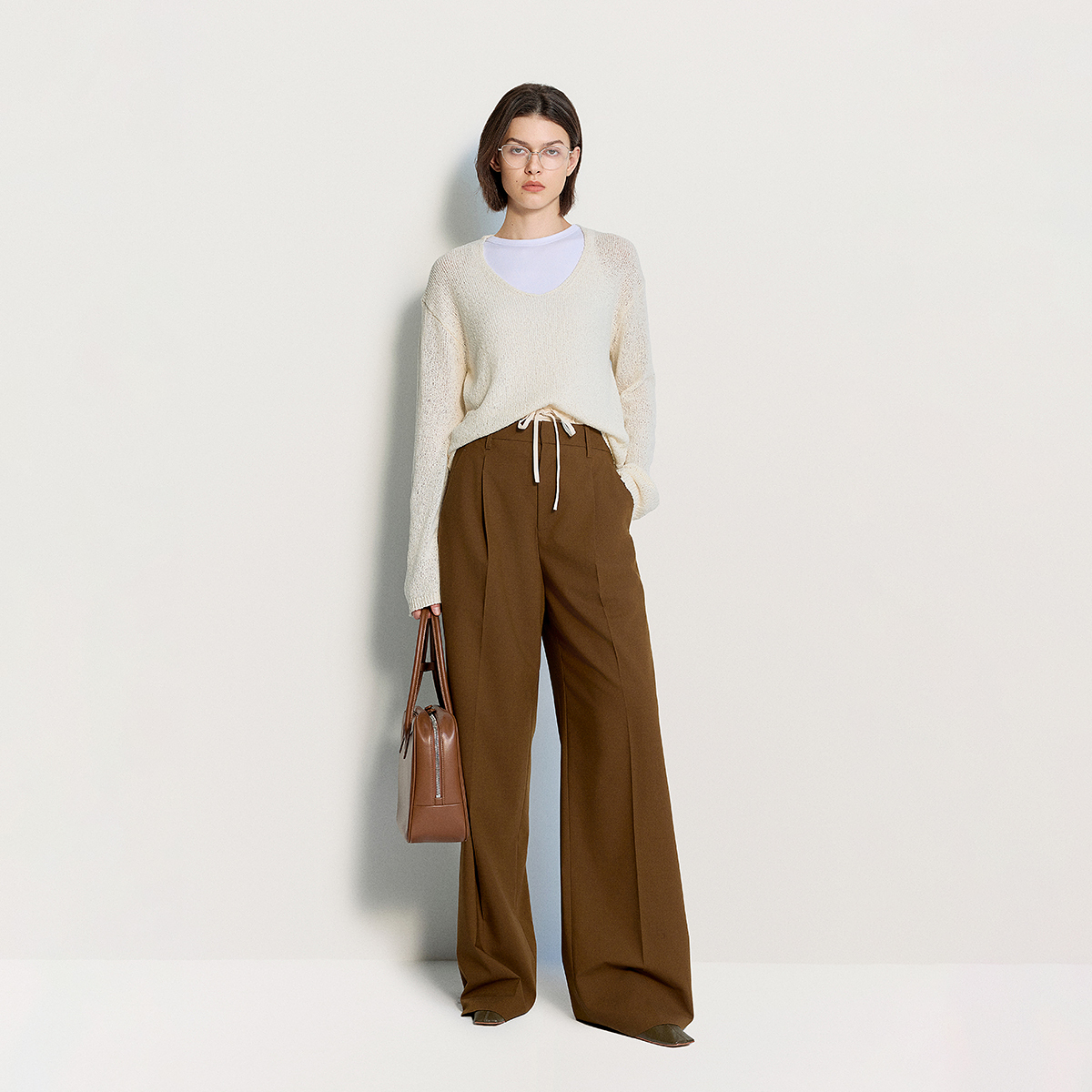 可拆腰头2025秋冬新品 OCHIRLY欧时力 精纺澳大利亚毛涤阔腿长裤