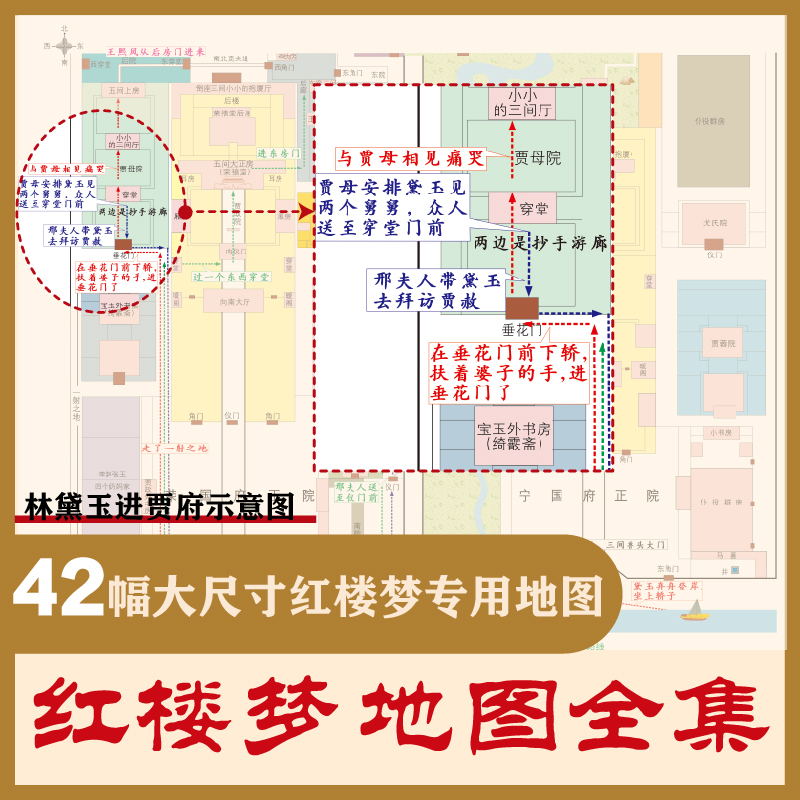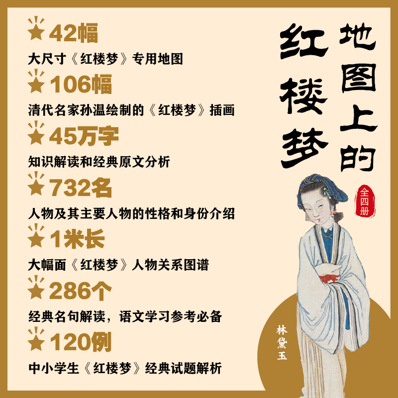 红楼梦 地图上 以地图形式 解读经典 内附一米长人物图谱快速梳理人物关系更快理解学习 名著轻松提升文学素养 全四册