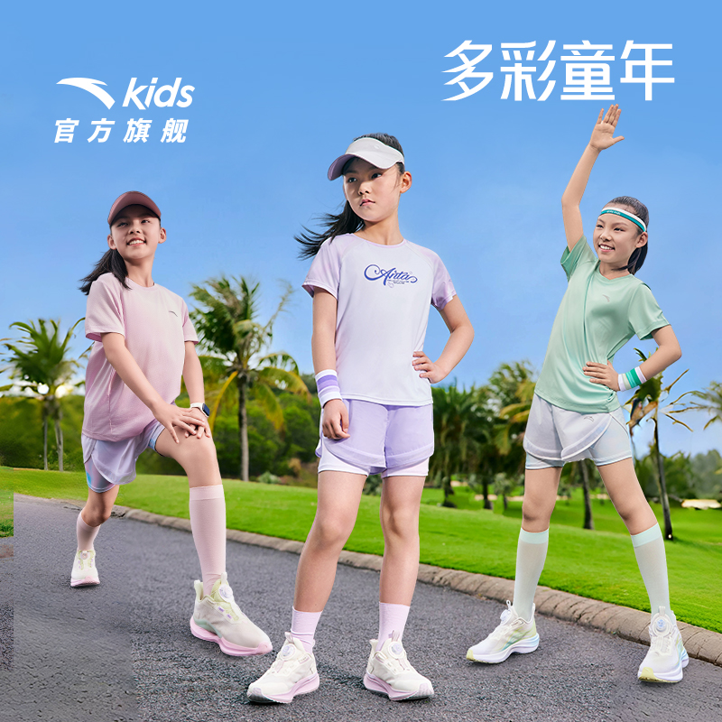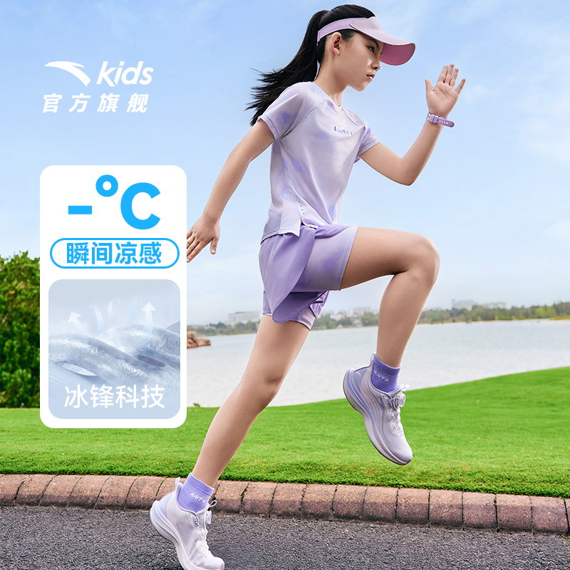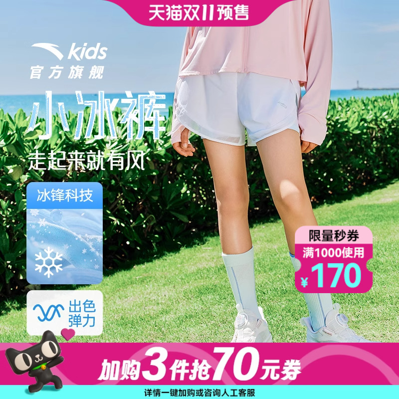 冰感透气大童速干紧身网纱五分裤 安踏儿童女童运动短裤 2025夏新款