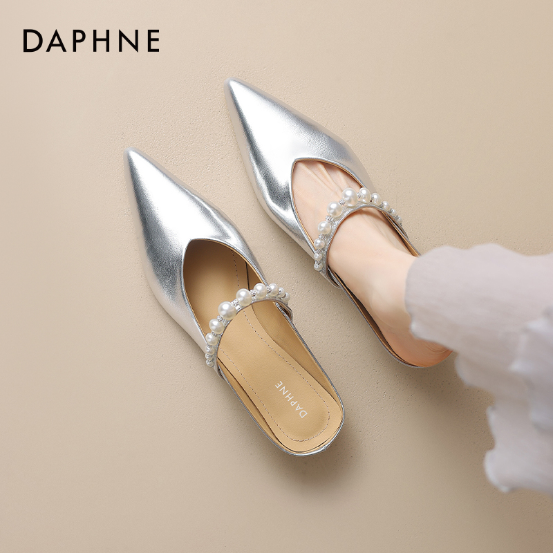 平底单鞋 达芙妮尖头拖鞋 夏季 黑色包头凉拖女鞋 子 女夏外穿2025新款