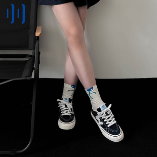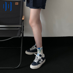 顽刻官方海军蓝春季 校园风W系列翻毛皮帆布拼接男女国潮滑板鞋