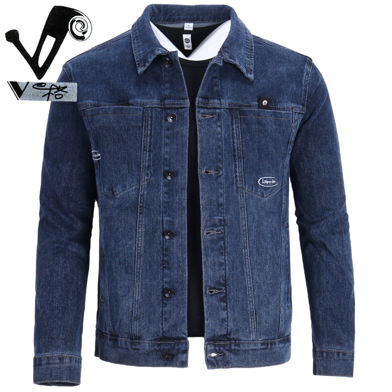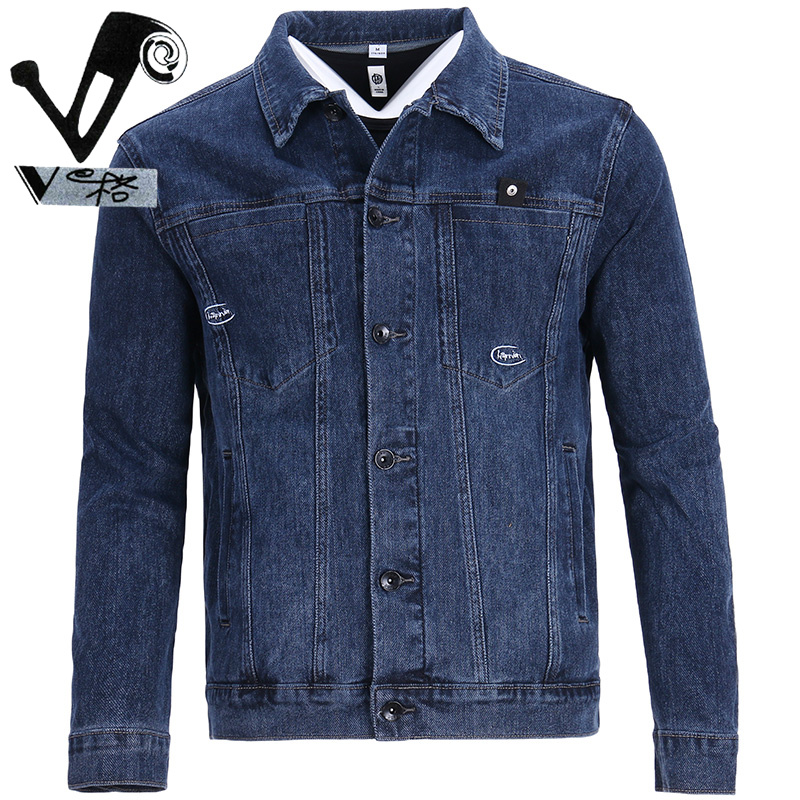 V格轻奢高档牛仔外套男2025新款 百搭舒适翻领夹克多口袋刺绣牛仔