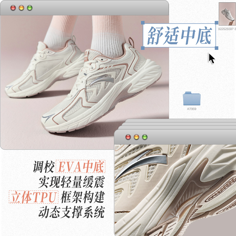 2025秋季 女鞋 新款 时尚 安踏AT959 运动鞋 潮流革网拼接复古跑步鞋