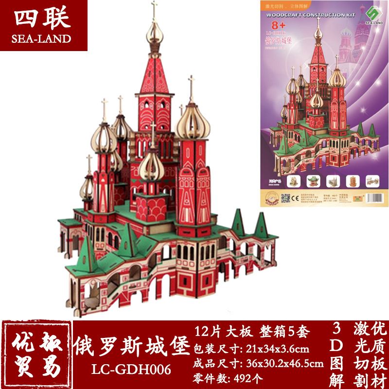 俄 玩具DIY立体拼图手工仿真模型 激光切割木制3D益智拼装