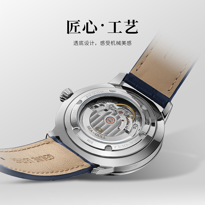 商务潮流全自动机械手表男表1134 简约高级感经典 正品 海鸥腕表男士