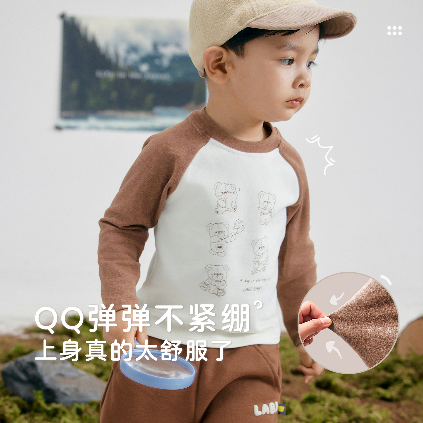 插肩T恤 打底衫 拉比儿童圆领衣男女童休闲长袖 套头上衣2025秋冬款