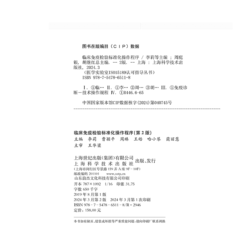 临床免疫检验标准化操作程序第2版 社 医学实验室ISO15189认可指导丛书周庭银胡继红李莉曹颖平周琳王皓哈小琴上海科学技术出版