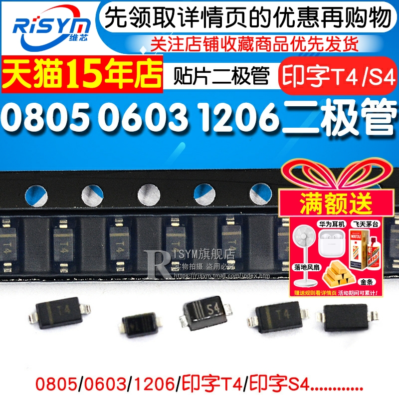 0603 0805 1206 丝印T4 丝印S4 1N4148WS 贴片开关二极管 IN4148