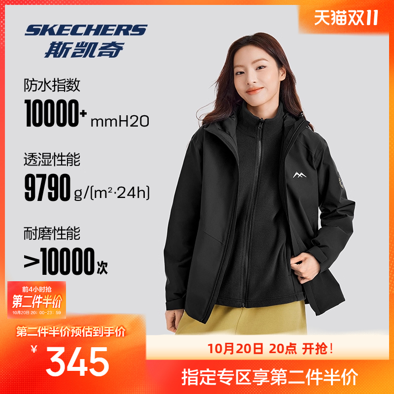 斯凯奇魔方冲锋衣防晒男女同款 三合一加绒防风防水登山徒步外套