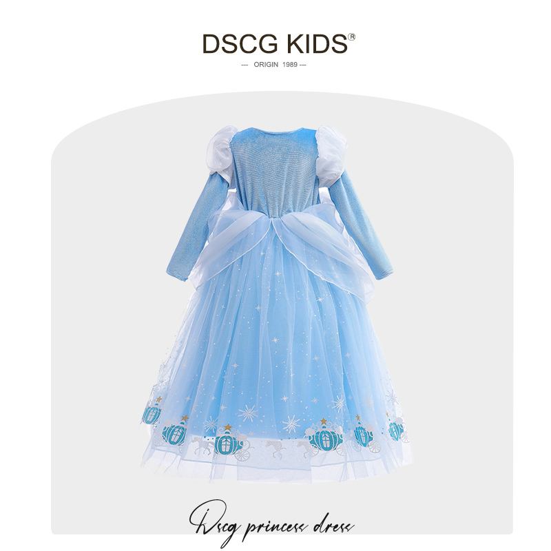艾莎公主裙新款 迪士尼儿童灰姑娘生日礼服纱裙子春秋 女童爱莎正版